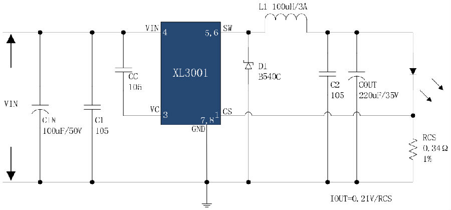 (5) XL3005E1采樣DC電流,恒流精度高( ±3%) ,實現LED 真正恒流;