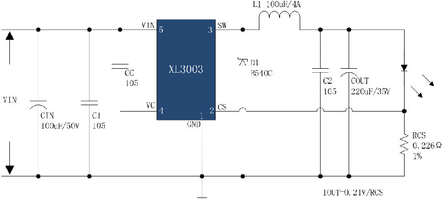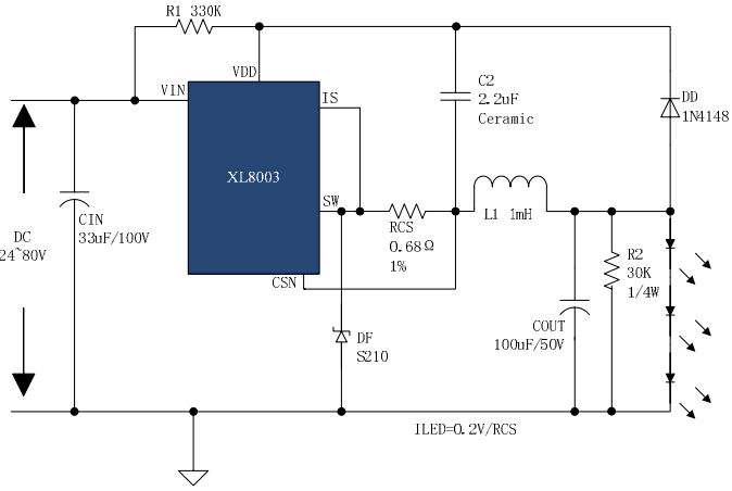 (5) XL3003E1采樣DC電流,恒流精度高( ±3%) ,實現LED 真正恒流;