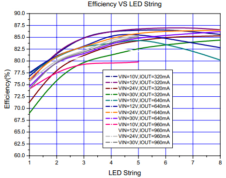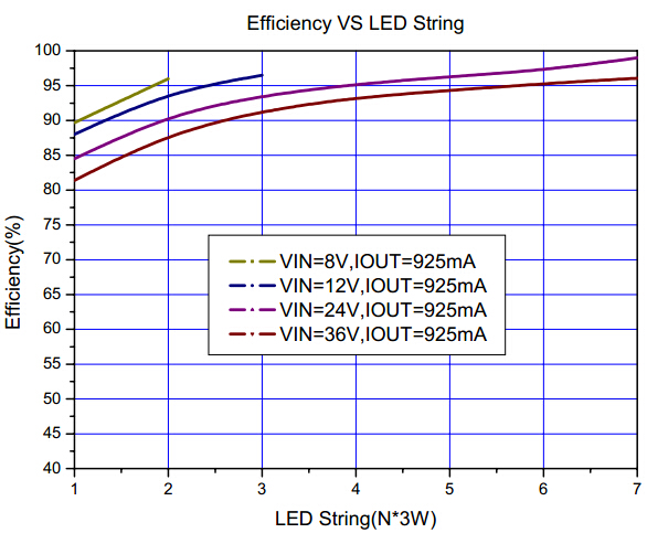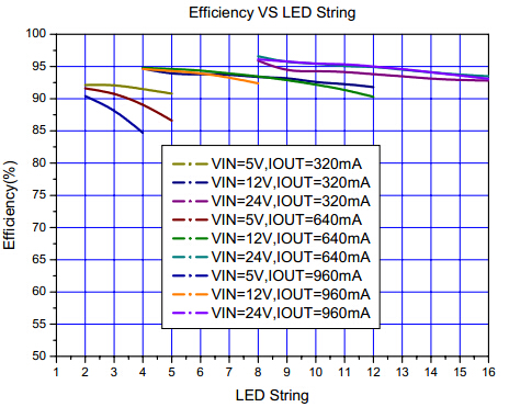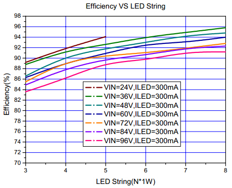 (3) XL8003E1轉換效率高,最高可達96% ,方便熱設計;