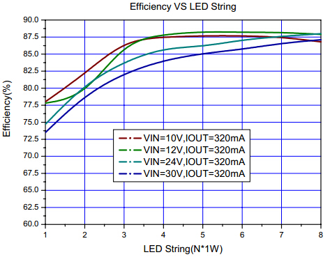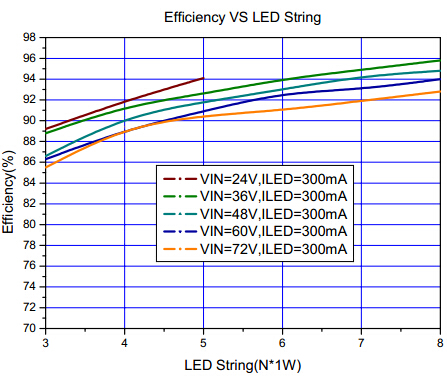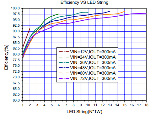 4 | XL8002E1 | 12V~80V | PFM | BUCK | 16*1/3W | 98% | ±4% | 0~50W | TO263-5L |