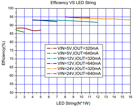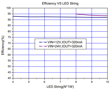 (2) XL8002E1內部集成高壓、大功率MOSFET ,輸出最高可支持18串,最大驅動功率50W ;