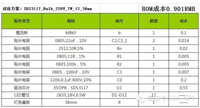 ②BOM成本0.90RMB,8顆電子元件,芯片內置智能調光,普通墻壁開關實現三段調光。