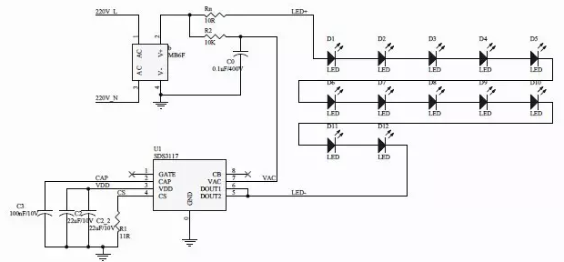 SDS3117是一款高壓線性恒流LED驅動芯片。