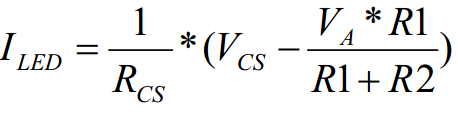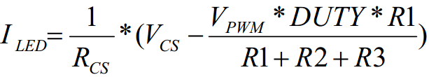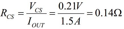 ⒉ CS通過采樣電阻檢測(cè)輸出電流進(jìn)行調(diào)整,輸出電流計(jì)算公式為: