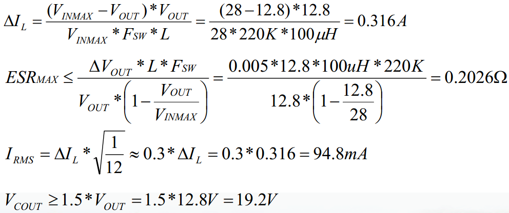 VCOUT≥1.5*VOUT;ESR通常取值不超過0.2Ω。