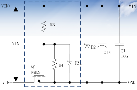 解決方案:添加防反接電路(下圖藍(lán)色虛線框中電路)。